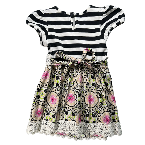 Counting Daisies Black, White, and Pink Dress with Black and White Striped Leggings - Size 6