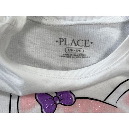 The Children's Place White Cat T-Shirt Kitty with Purple Sunglasses Little Girl Size 5-6